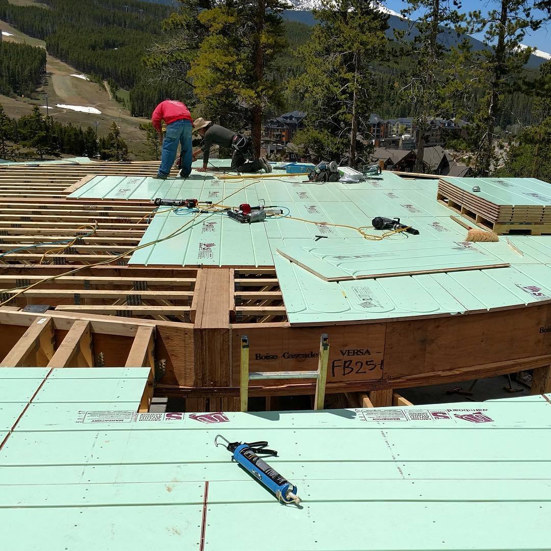 A new shot of the project in #breckenridgecolorado. Warmboard-S down right over the joist – just as we foretold. #colorado #warmboard #newhome #skislopes
